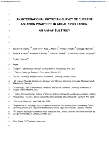 An international physician survey of current ablation practices in atrial fibrillation: An AIM-AF substudy.